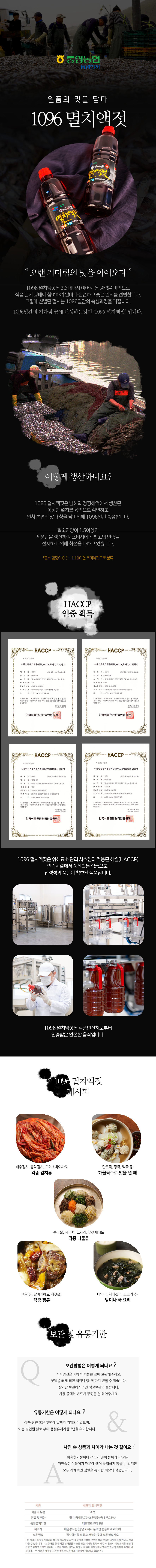 HACCP 통영 1096 멸치액젓 1kg / 2kg